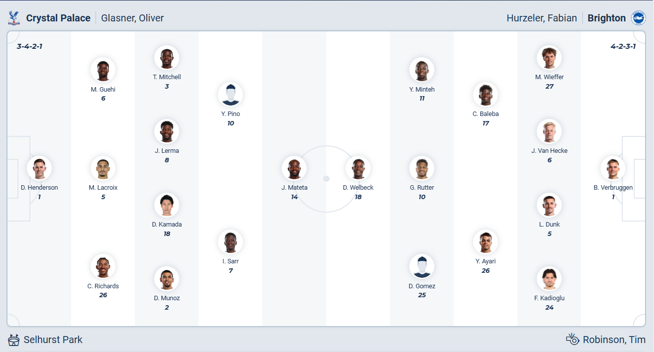 Vòng 11 Premier League, Crystal Palace sẽ tiếp Brighton trên sân nhà với mục tiêu giành chiến thắng để có vị trí tốt hơn trên bảng xếp hạng. Đây không phải trận đấu dễ dàng bởi đối thủ của họ đang có phong độ ổn định.