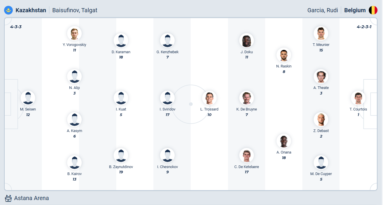 Dự đoán tỉ số trận đấu: Kazakhstan 0 – 3 Bỉ (Chọn Bỉ và Xỉu trận)